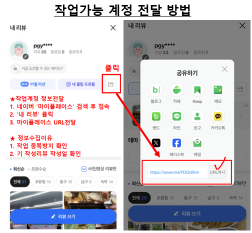 리뷰어 소셜계정 등록방법 2025-11-30 본문 [네이버 소셜계정 등록방법] 1. 네이버에 마이플레이스 검색 2. 내 리뷰 클릭 3. 마이플레이스 URL전달 목록 댓글목록 댓글목록 등록된 댓글이 없습니다.